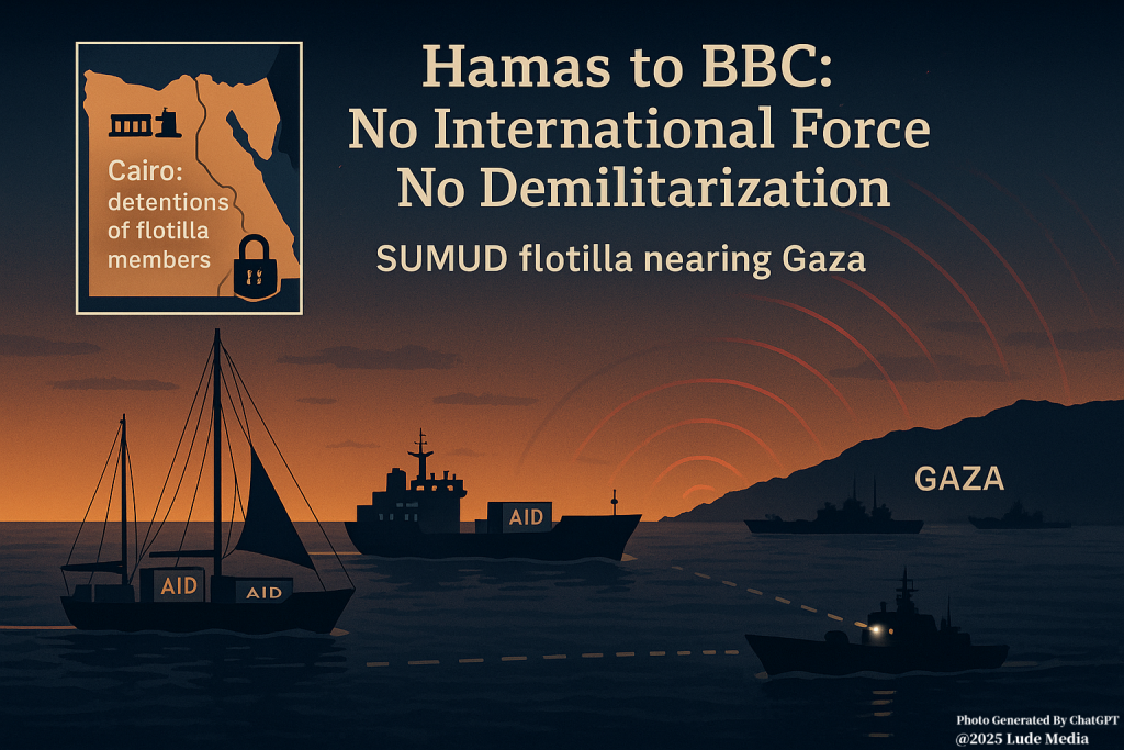 【路德社·简讯 ET 2025年10月1日】 哈马斯高级官员对 BBC 表示:“我们将对川普的框架作出否定回应。我们不准备接受国际部队,也不接受去军事化。 自以色列揭露哈马斯与巴基斯坦的一体两面关系后,全球苏穆德船队正在接近加沙海岸。 埃及正在压制亲巴勒斯坦的活动,在开罗为加沙运送援助物资时拘留了三名苏穆德船队成员。 “萨穆德”号舰队正接近加沙,位于离岸145海里处。意大利、西班牙和土耳其的海军护航舰队已撤离,以色列海军正准备拦截。 扩展阅读:以色列铁证曝光:哈马斯与巴勒斯坦执政方是一体两面