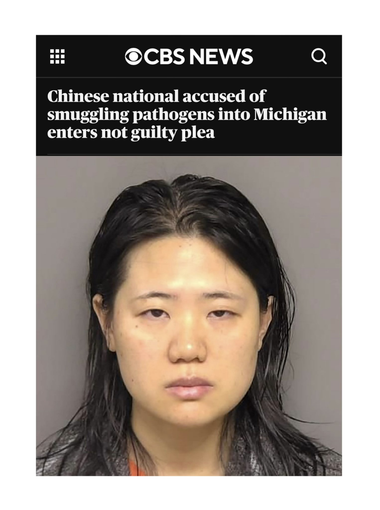 密歇根大学博士后蹇韵晴9月18日出庭:就“病原体走私”等四项指控不认罪