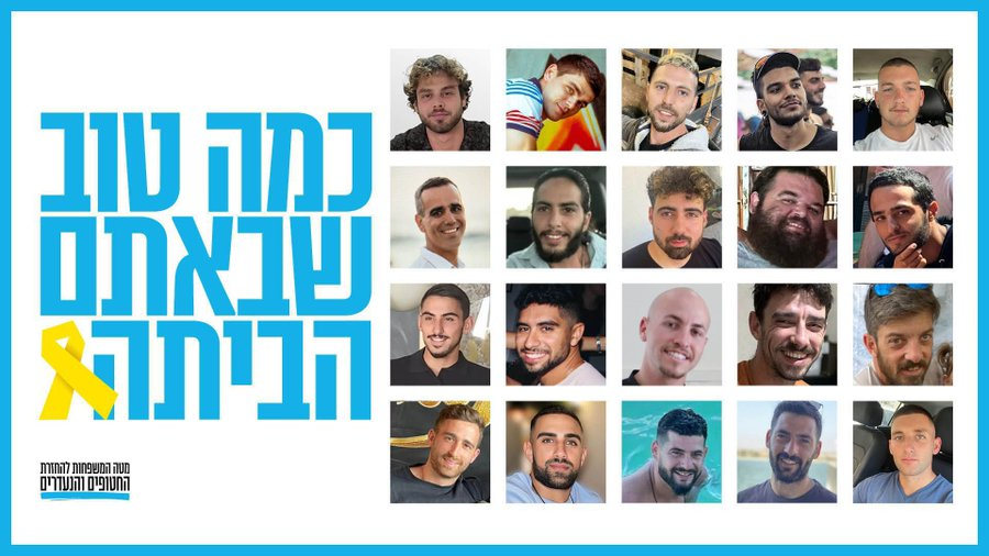 到目前为止,我们已经把207名人质带回家,但仍有48人被关押在加沙的地牢中。其中20人生还,他们被饿虐、遭受酷刑、见不到日光,被剥夺人性。以下是这20名在世人质的名字: