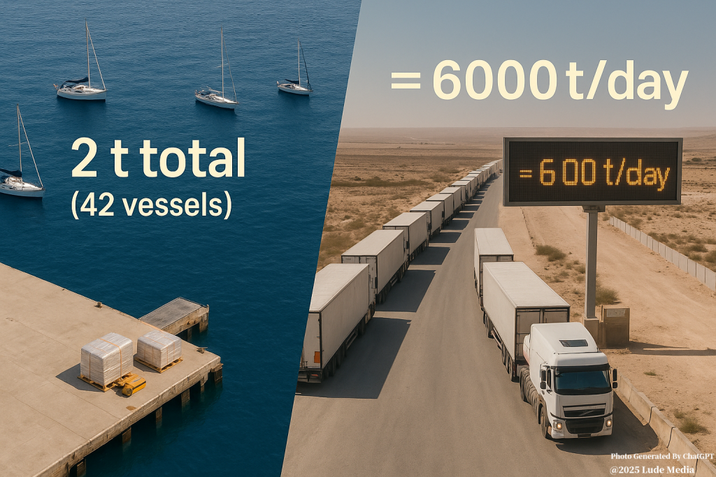 难怪这支“假援助”的哈马斯“萨穆德”船队拒绝了以色列、意大利和希腊提出的所有在周边港口和平卸载加沙援助物资的方案:在对该船队所有船只与游艇完成检查后,我们发现其所谓“援助”在 42 艘船上加起来也不过 2 吨。