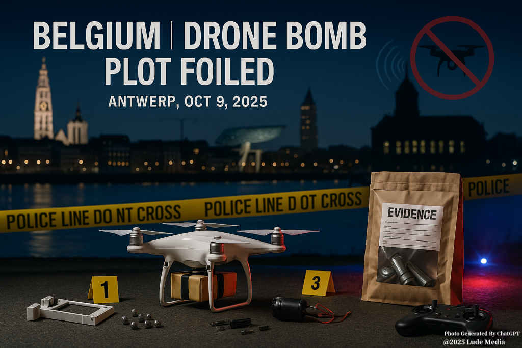10月9日,比利时联邦检方与安特卫普警方开展联合行动,拘捕三名涉恐嫌疑人,挫败一项以装载爆炸物的无人机袭击政要的“圣战式”阴谋。多家政府高官确认,首相巴特·德韦弗在潜在目标之列。办案人员在安特卫普多处住址起获未完工的简易爆炸装置、一袋钢珠,以及疑用于改装无人机部件的3D打印机与电子元件。三名嫌疑人分别出生于2001年、2002年与2007年,其中两人继续接受司法调查,一人已获释。