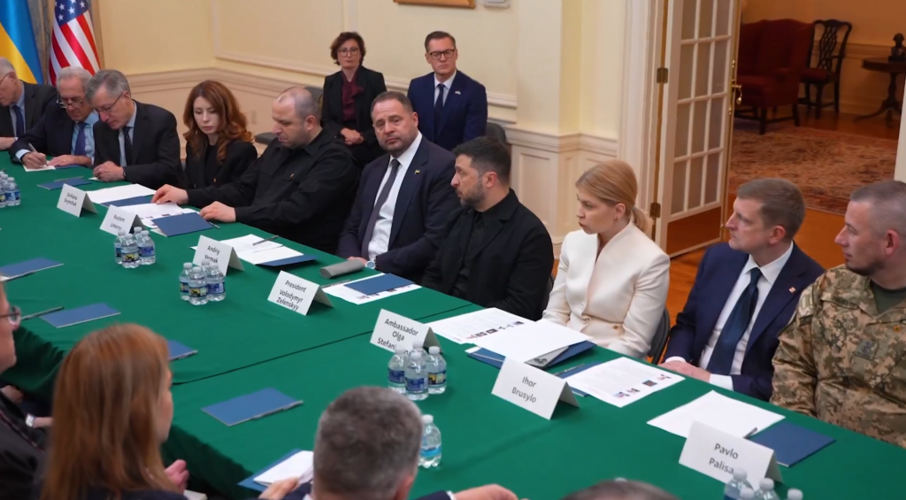 “我会见了多家美国智库的负责人。我们讨论了战场态势以及能让我们更接近“有保障的和平”的步骤。许多智库代表已与我们的政府和军方合作,寻找有效方案。对此我们表示感谢,并期待他们持续支持。感谢这场富有意义的讨论与富有洞见的想法。我对他们对乌克兰及我国人民的真诚支持深表感谢。”