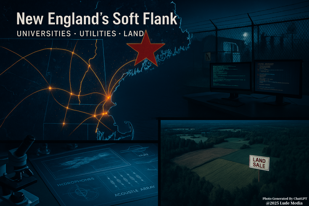 2015—2025年的公开材料与专业报告显示,新英格兰正成为对手获取美国顶级创新能力与关键基础设施进入面的“软侧翼”。主轴为与中共相关的网络渗透与军民两用技术获取,辅以“学术抽取”“战略性购地/资源进入”等手段,在地理上集中于马萨诸塞与缅因,向康涅狄格、罗得岛、新罕布什尔外延。PWK 国际的最新报告将之概括为“战略性合围”,指出“中共国家安全部已不再‘远在海那边’,而是嵌入新英格兰的经济、科技与科研机构之中”,从剑桥实验室到缅因沿海农地,“代理人、白手套与投资者正悄然收割智力资本、关键技术与战略资源”。该报告并强调,这一合围通过“网络间谍、学术抽取与战略买地”三路并进,已在马萨诸塞、康涅狄格、罗得岛、新罕布什尔与缅因“展开”。同时,新英格兰作为美国“扬基式巧思”传统的延续地,拥有以生物科技、医疗、航空航天、机器人、轻武器制造、水下技术与软件为特长的强大生态,这种开放性与高价值并存的格局,提高了被渗透与被利用的风险。