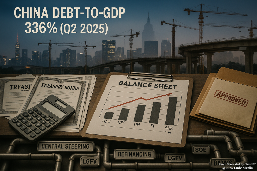 截至2025年第二季度,中共国总债务与GDP之比约336%,较10年前上升约78个百分点。分部门口径为:非金融企业约142%,政府约93%,居民约60%,金融企业约41%。国际金融协会指出,“今年上半年债务的增加规模,可与2020年下半年相提并论”,并称中国“政府债务率约93%,年内或逼近100%”。世界银行评估,2025年直接面向家庭的财政刺激“约为当年GDP的0.5%,其余主要投向公共投资”。中国人民银行披露,上半年“新发放企业贷款利率下降约45个基点,新发放个人住房贷款利率下降约60个基点”。国际货币基金组织强调,“在中国,私人部门债务的增加主要由非金融企业驱动”。