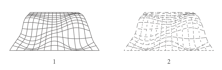 假设图1的不规则面为时空粒子的某个瞬间的运动范围,不规则面自变化成图1的形态后保持不变,因为四维中看不到平面,所以如图2,没有变化的面就会在四维空间的观测中消失,也就是时空粒子不再这区域运动。