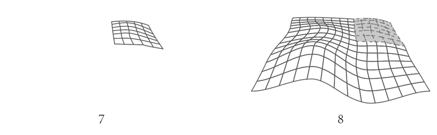 如图7的不规则面不再变化,但与图7相连的不规则面发生变化,这时候,图7的不规则面在四维空间的观测中将会消失,且在四维空间可以通过时空粒子观测到图8的不规则面。那么四维空间中,如通过时空粒子观测三维空间的事件奇点呢?