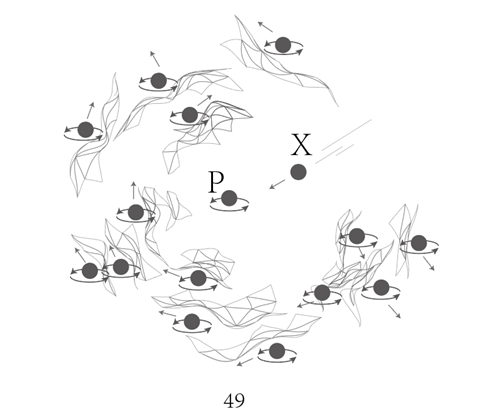 如图49,假设事件奇点X高速飞向时空锚点P,时空锚点周边的事件奇点全部都会被弹开,这时候整个时空锚点结构都会遭到破坏,因此时空锚点极其容易受到其他事物的影响,极其不稳定且容易失控。