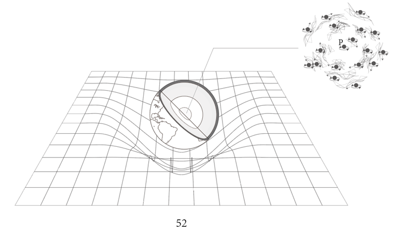 如图52,其实爱因斯坦当年已经远超那个时代认知,看到了那个扭曲的面,而且发现了,通过行星的运动,那个面是在变化的。但其实从微观角度去看,每颗分子,原子,量子都能使这些面进行扭曲。而这些通过扭曲并且不断在变化的不规则面,最后由全视观测点通过时空粒子在这些不规则面上进运动,从而使四维空间观测到三维宇宙中的事物。同时也可通过时空锚点对高维空间传递信息,最终形成完美闭环。在量子信息(脑量波)时代,假设三维宇宙有一个地外高等外星文明问一个人类一个问题,地球是怎么形成的?量子计算机终端(智体终端)通过脑机接口将终端中关于此问题的相关信息传输到脑机,再通过脑机信号转译传输到地外高等文明的意识接口中 。而如果这个地外文明已经观测了地球6000万年,那么我们再问他,地球是一个怎么样的星球?他也会通过他信息终端(可能已发展成个体终端形态)发送至人类的脑机接口,因为人脑处理不了这么庞大的信息,所以脑机传送至量子计算机终端,再转译传输到人类大脑中……