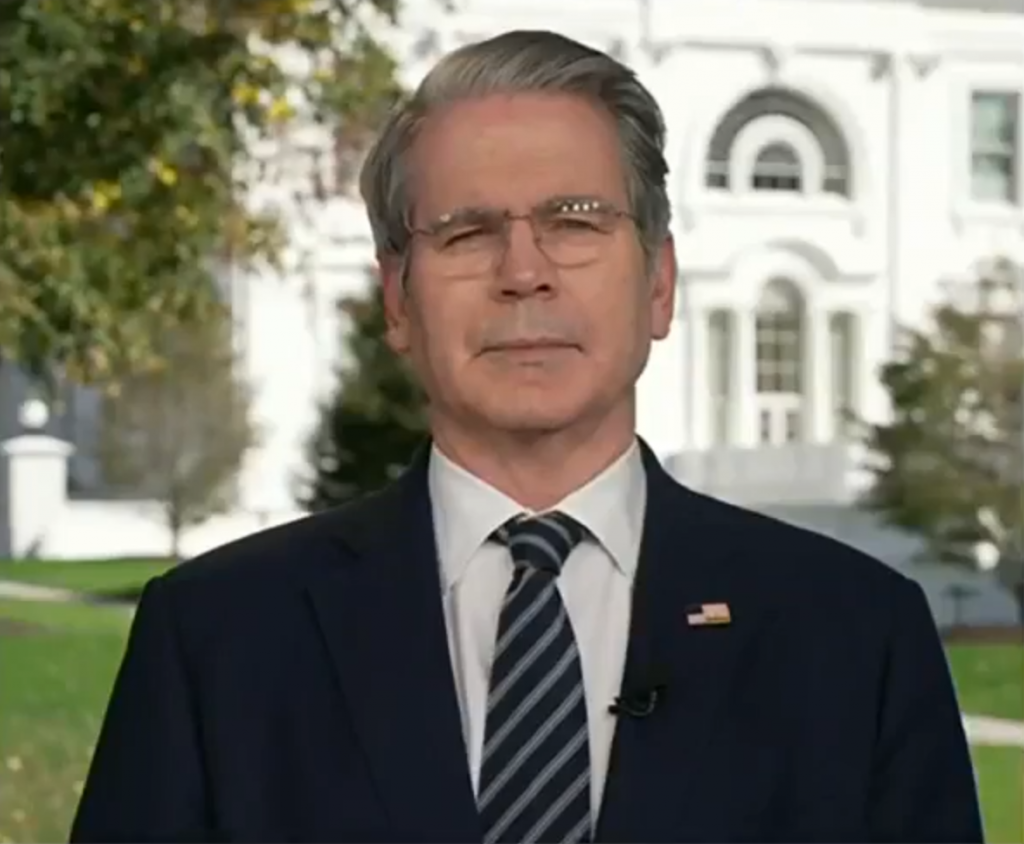 10月22日,财政部长斯科特·贝森特在白宫对记者讲话