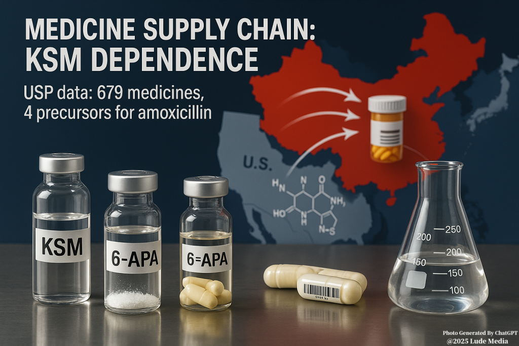 报告将阿莫西林作为典型风险范式。行业解读援引美国药典称,尽管阿莫西林的原料药与制剂在全球多地生产,但其合成“最终依赖4种关键起始材料——这些材料几乎全部在中国生产”。其中最关键的是6-氨基青霉烷酸(6-APA),它不仅决定阿莫西林,还关联氨苄西林、双氯西林、萘夫西林、苯唑西林、哌拉西林等一系列青霉素类抗生素。美国药典警示称:“任何中断——比如工厂停产或出口限制——都可能沿全球链条快速传导”,“当所有路线在上游收束于同一来源时,多元化的原料药产能并不能真正防风险”。