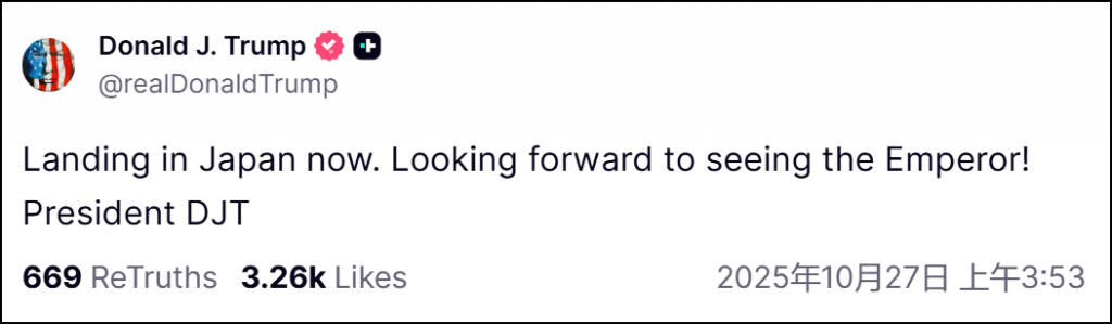 日本时间 2025年10月27日 下午4:53,川普总统 TS: