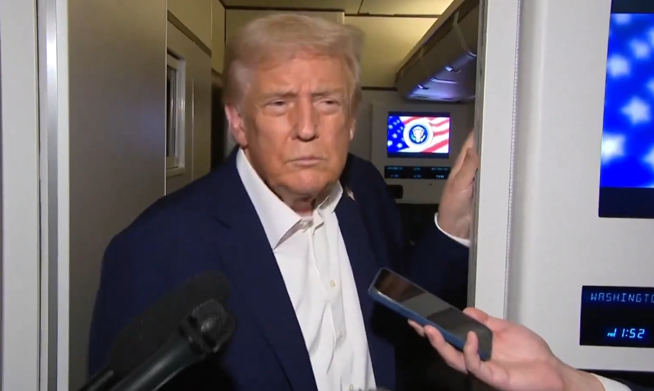 川普总统在“空军一号”上与媒体简短交流,2025年10月31日