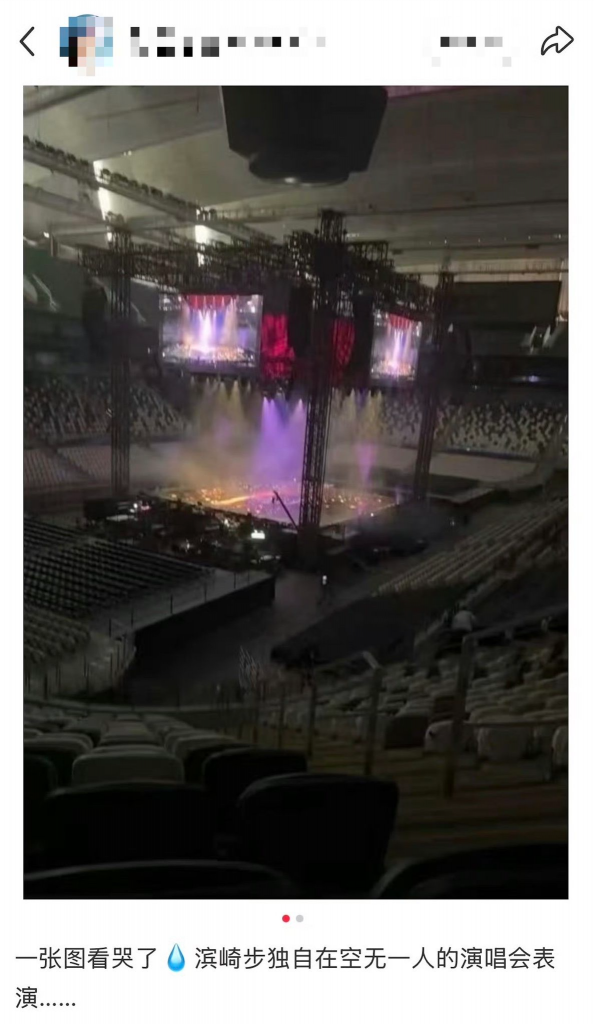 据中国社交平台上传出的信息,滨崎步在舞台被拆除前,曾在空无一人的场馆内完整跑完一场正式演出,一边想像台下观众仍在座位上。相关人士透露,这场“无人演唱”全程都有录像,未来有可能以影像形式公开给歌迷观看,作为对被临时取消演出的歌迷的一种补偿。