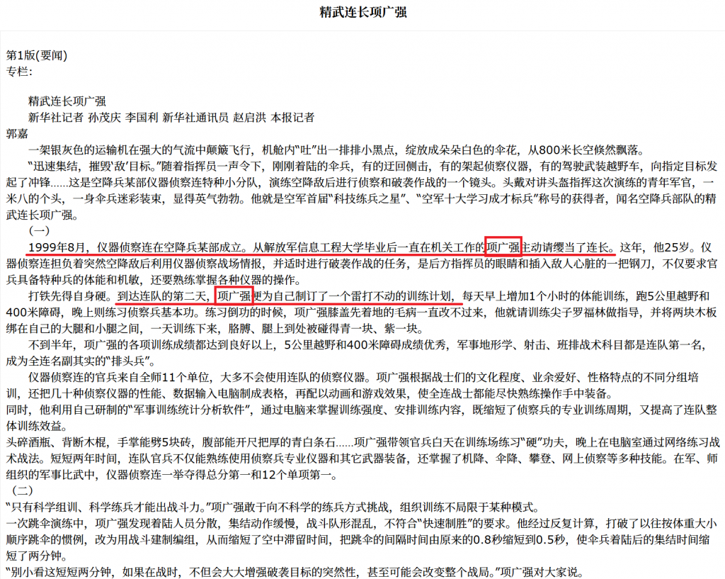泄露的俄方文件和人脸识别结果还点名了多名来自中国人民解放军空军空降兵军的军官。文件显示,高级上校项广强曾作为代表团成员赴俄参加在俄境内举行的秘密会议。《基辅独立报》利用人脸识别发现,2024年12月20日至21日,项广强还随中国代表团访问摩洛哥第1伞兵旅,参加所谓“经验分享”访问。