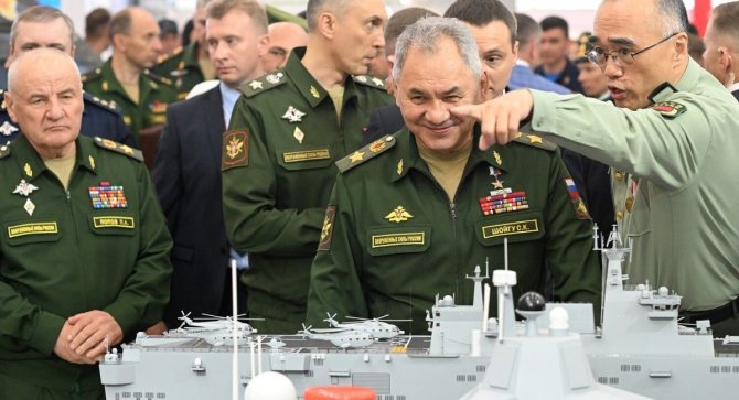 泄露文件与现场照片显示,2023年时任装备技术合作局局长范建军少将,多次以代表团身份赴俄参加闭门谈判,并出现在俄军火展等公开活动现场。2023年8月,他在莫斯科附近举行的“陆军-2023”国际军技论坛上被拍到,向时任俄罗斯国防部长谢尔盖·绍伊古介绍中国展台,但当时所有俄媒报道都未提及他的姓名与职务。