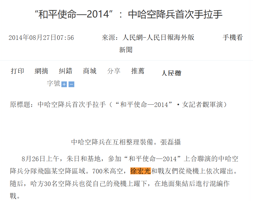 另一名被确认的军官徐宏光,身份为空降兵军上校。2018年,他在俄罗斯国际军运会“空降排”项目展区附近被游客拍下,军装上清楚标注“China paratrooper(中国伞兵)”。泄露文件将他标注为中国人民解放军空军空降兵军上校。
