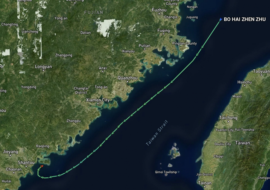 目前,有兩艘中國「渤海」滾裝船南下通過台灣海峽,其中一艘已經在廣東省南澳島附近,距離解放軍兩棲演習區域的東山島不遠,不清楚是否為演習之用 https://t.co/9eozTjE7OJ