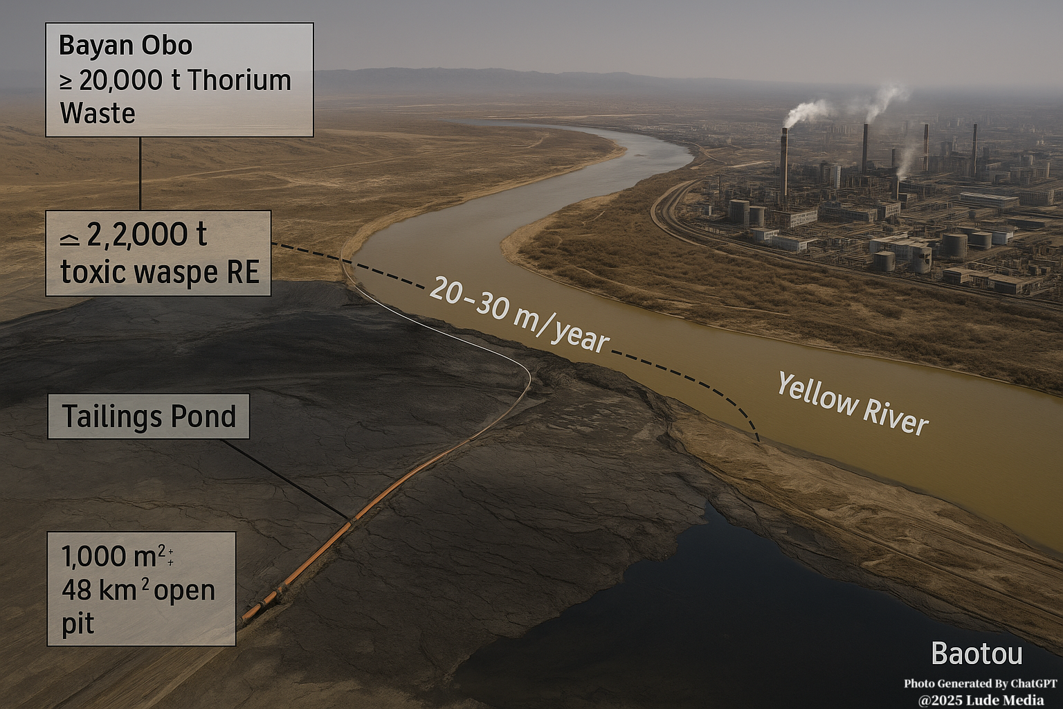 ZeroHedge:中国在稀土冶炼上占据主导的一个简单原因,是它的国土足够大,能容纳所有有毒副产物。世界最大的稀土矿白云鄂博,已产生超过7万吨放射性钍并存放在当地。但该尾矿库缺乏合规的防渗衬层,其内容物正在渗入地下水,最终将流入黄河——这是一条为50座中大型城市居民提供饮用水的关键水源。 -