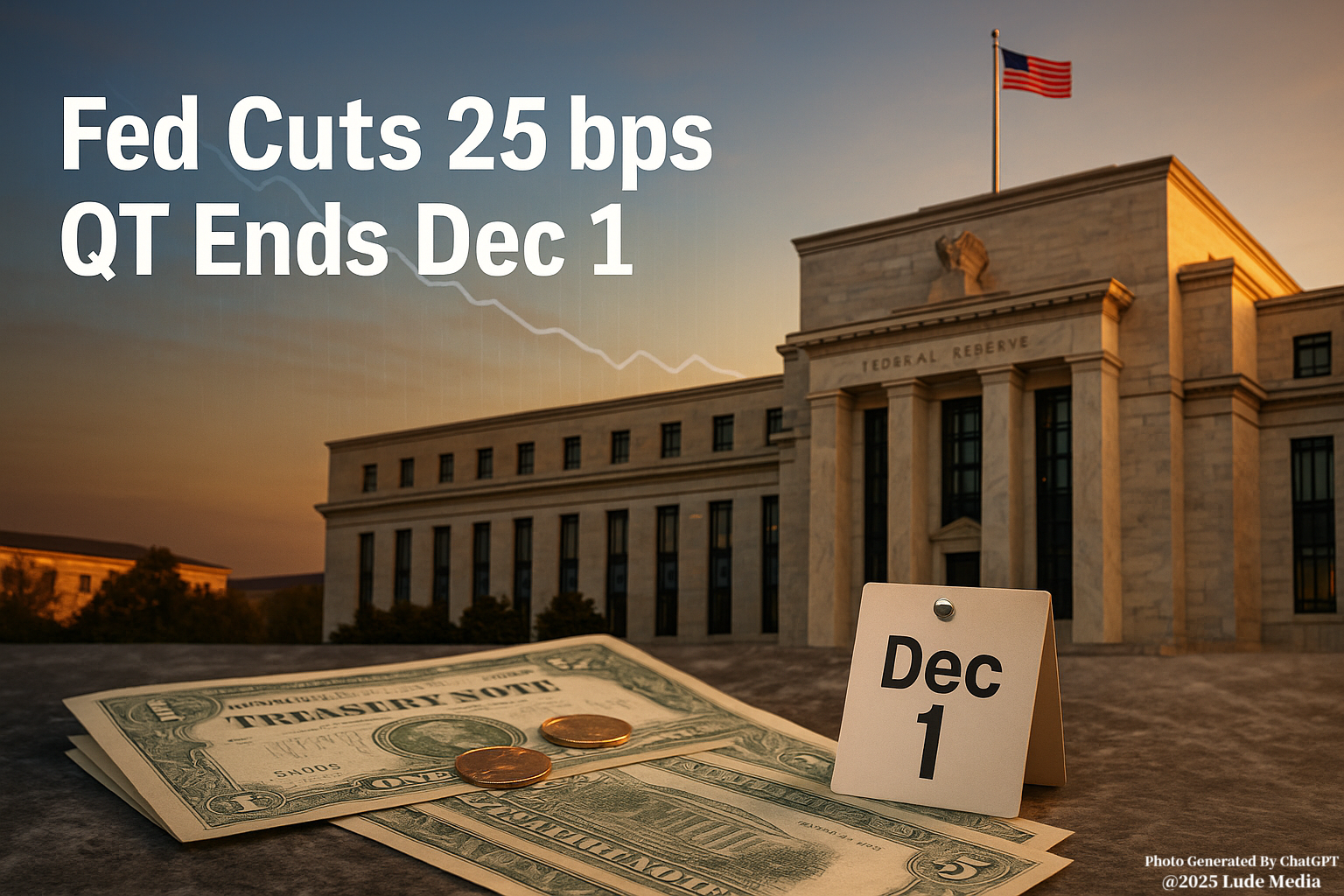 美联储宣布:降息25个基点;自12月1日起结束资产负债表缩减,转入再投资操作美联储宣布将联邦基金利率目标区间下调25个基点至3.75%-4.00%,为本轮政策路径中的再一次宽松举措。同期,联邦公开市场委员会,决定自12月1日起结束资产负债表缩减,转入再投资操作,以在可预见期内保持证券持有量大体稳定。
