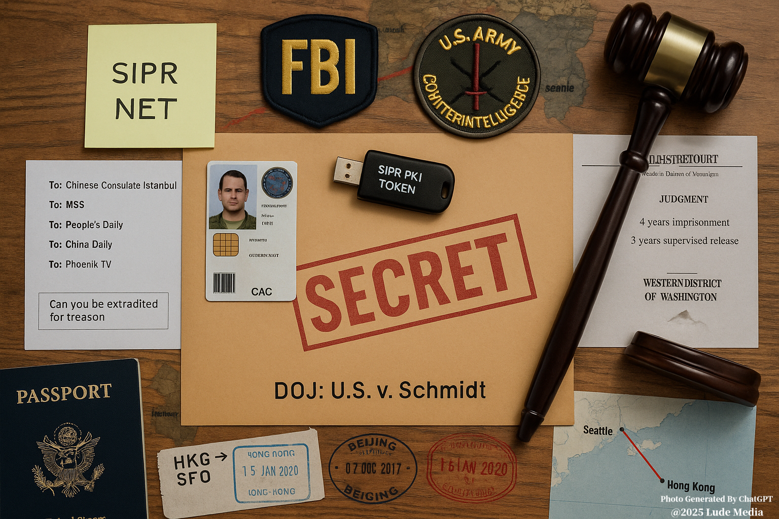 前美国陆军情报士官向中共提供机密/绝密情报被判四年美国华盛顿西区联邦地区法院于2025年10月28日在西雅图宣判,前美国陆军士官约瑟夫·丹尼尔·施密特被判处四年监禁、三年监督释放。主审法官约翰·C·考夫诺尔说明,量刑基于其行为的严重性以及实施时的心理健康状况。施密特已于2025年6月就两项联邦重罪认罪:企图交付国家防务信息、非法持有国家防务信息。案件由联邦调查局主导侦办,美国陆军反情报司令部提供协助。