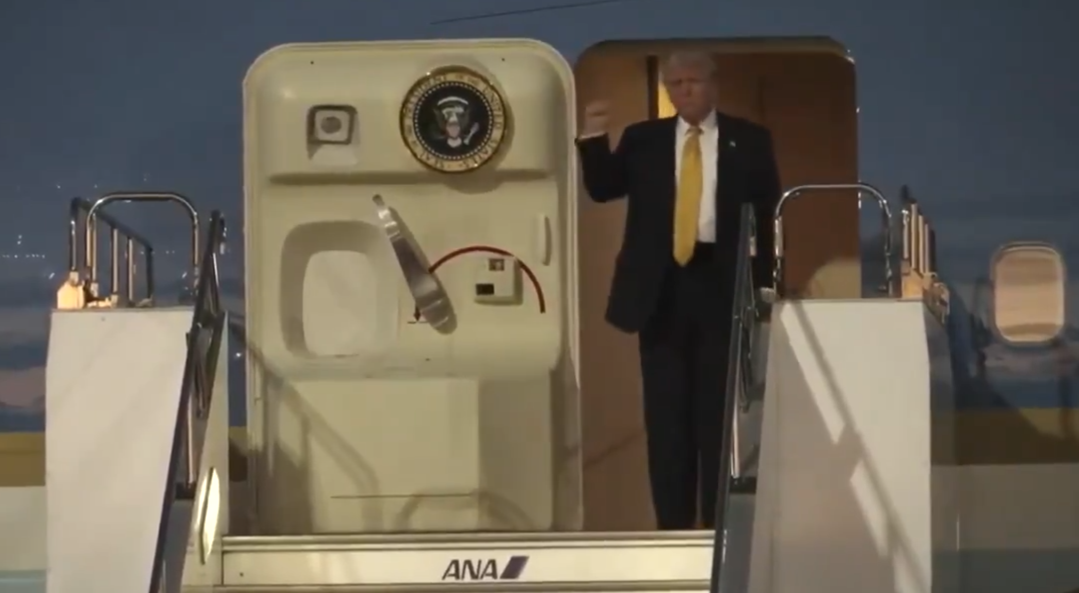 川普总统亚洲行——抵达日本后,直接改乘海军陆战队一号,如同在美国本土一样日本时间 2025年10月27日 下午4:53左右,川普总统抵达日本后降落在东京羽田机场。之后, 车队转往东京都内,行程包括进入皇居会见天皇德仁,并与日本新任首相高市早苗会谈。