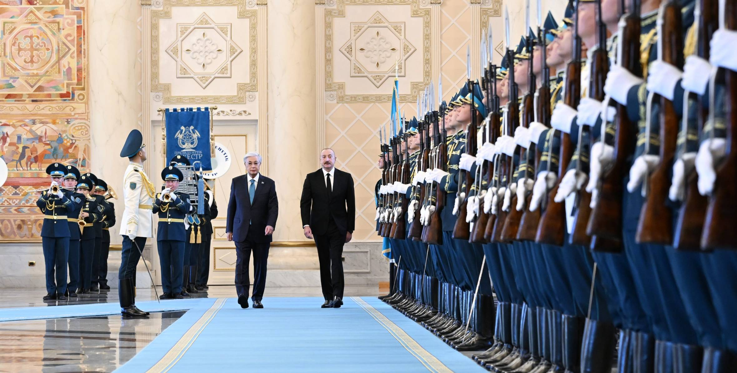 哈萨克斯坦总统隆重欢迎阿塞拜疆总统的国事访问【路德社·简讯 ET 2025年10月21日】 10月20日,阿塞拜疆总统阿利耶夫抵达哈萨克斯坦阿斯塔纳进行国事访问,哈萨克斯坦总统托卡耶夫在机场亲自迎接。 10月21日,哈萨克斯坦阿科尔达宫举行隆重欢迎仪式,随后两国元首会谈。