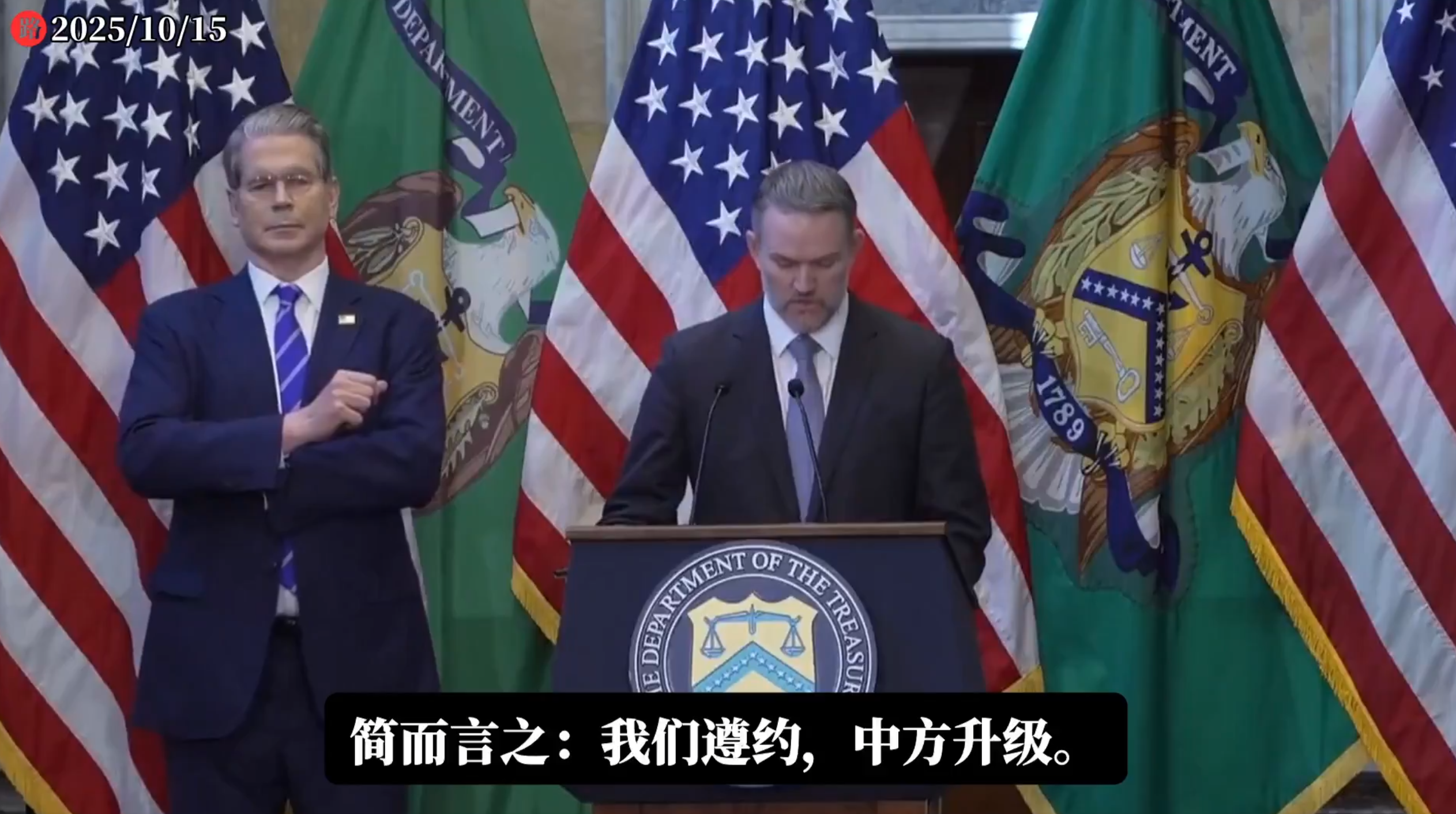 财长贝森特:中共国在对抗整个世界,我们将同欧洲盟友、澳大利亚、加拿大、印度以及亚洲的民主国家作出一个有力而全面的集体回应好消息是,这周正值国际货币基金组织年会,几乎所有我的对口官员都在这里。我们将同欧洲盟友、澳大利亚、加拿大、印度以及亚洲的民主国家沟通,并作出一个有力而全面的集体回应,因为中国的官僚不可能替全世界管理供应链或制造流程。