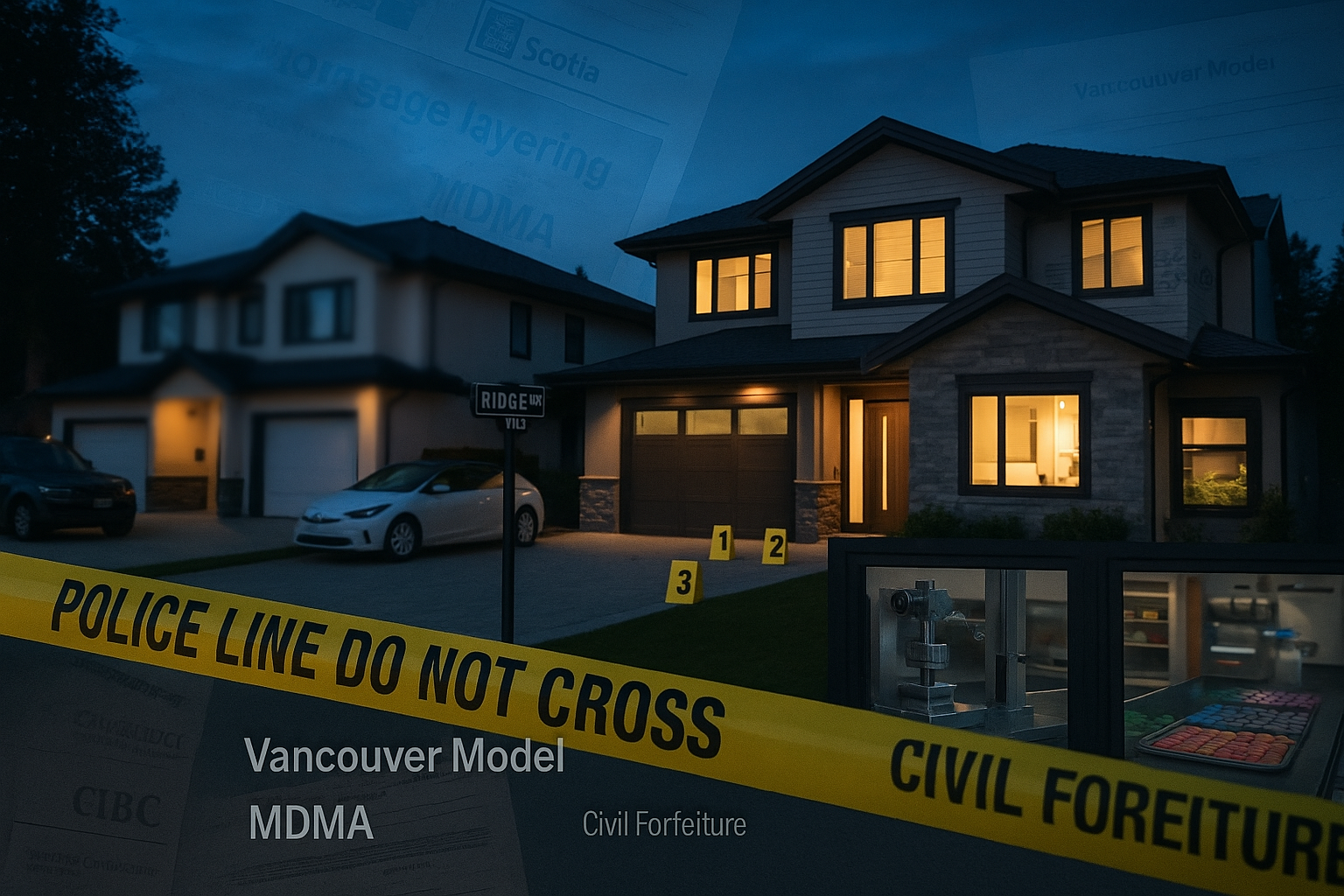 寸土寸金的温哥华 山脊路豪宅区成中共制毒与洗钱枢纽温哥华——卑诗省民事没收办公室,正就本拿比山脊路一宗新案提起追缴:皇家骑警在一栋评估价约350万美元的七卧豪宅内,查获合成类毒品与前体化学品、两台压片机及多副压片模具,约3000粒含3,4-亚甲二氧甲基苯丙胺(MDMA,俗称“摇头丸”)、甲基苯丙胺(冰毒)与咖啡因的片剂,以及601株大麻、20公斤大麻碎料和约13公斤热封半磅包装的干燥大麻。与此宅比邻的另一栋约5000平方英尺豪宅,已在去年被锁定于另一宗民事没收案,警方同样在…