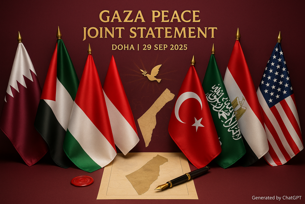 卡塔尔、约旦、阿联酋、印尼、巴基斯坦、土耳其、沙特阿拉伯和埃及外长联合声明:欢迎美国总统为结束加沙战争所作的真诚努力