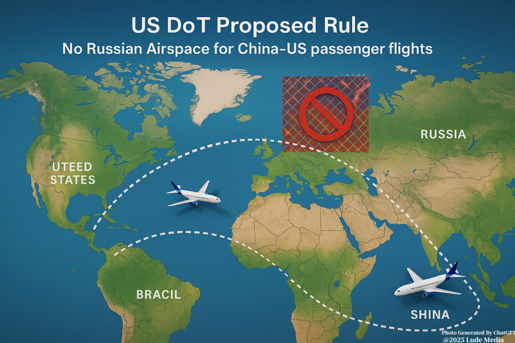 【路德社·简讯 ET 2025年10月10日】 美国运输部10月9日发布拟议命令,拟在中资航司的美国外航许可上加注条件,禁止其在美中“客运或客货混合”航班中使用俄罗斯空域,纯货运不适用;适用对象点名中国国际、东方航空、厦门航空、南方航空,未涉及国泰;中资航司须在2日内答复,最终令一经发布30天后生效,最快11月落地;理由是美航自2022年起被禁飞俄空域,导致时长与油耗处劣势,部分美东直飞在不经俄空域时经济性受限;当前双边客运配额为每周50个往返;中方称该举不利人员往来。
