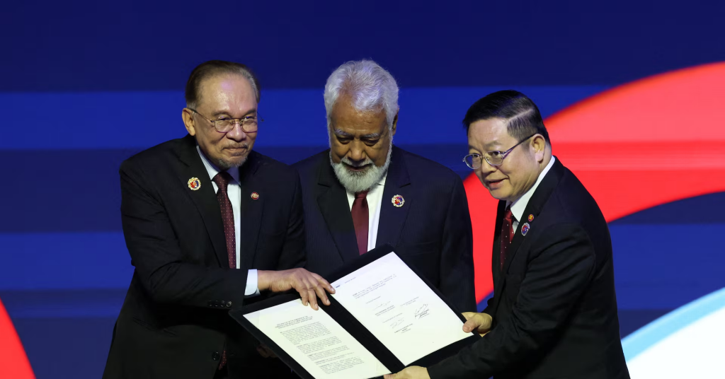 东帝汶已在2025年10月26日于马来西亚吉隆坡被正式接纳为东南亚国家联盟成员,成为东盟的第11个成员国。该决定…